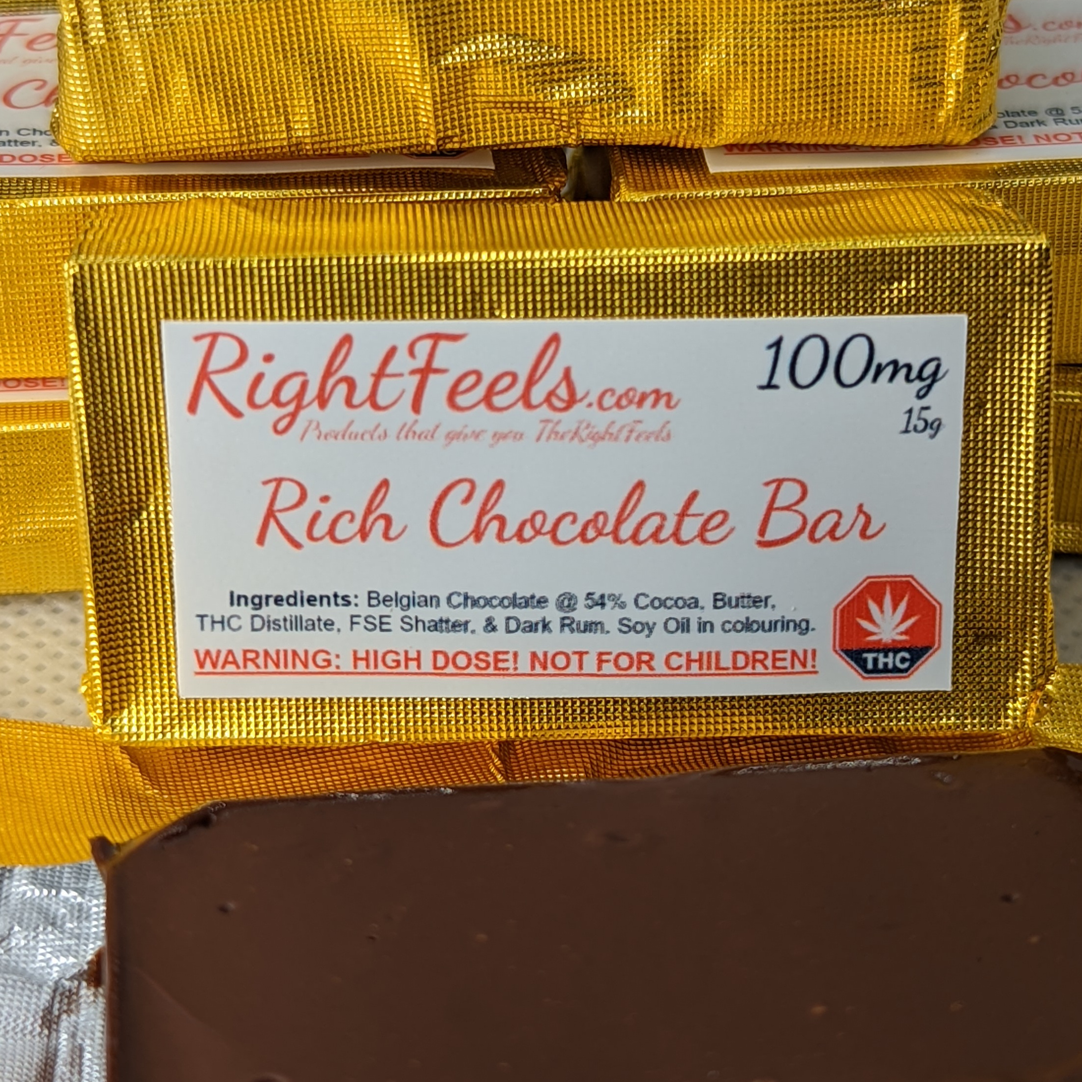 Each THC Chocolate Bar is 15g (fairly small), but contains a whopping 100mg of THC!