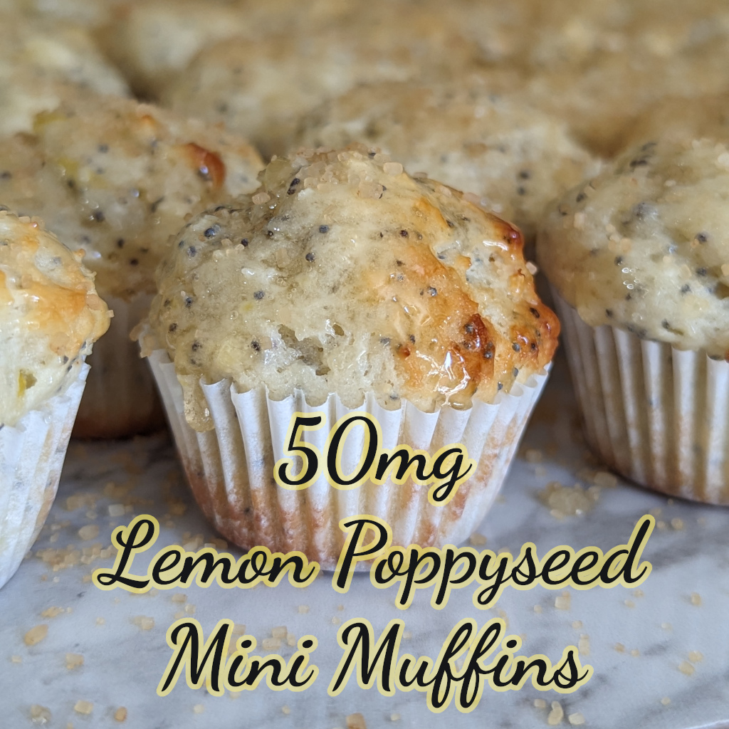 Flour, Sugar, 5% Greek Yogurt, Poppy seeds, Eggs, Butter, Fresh Lemon Juice & Zest, Baking Soda, Sunflower Lecithin, Salt, THC Distillate, Decarboxylated Shatter