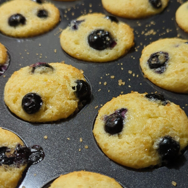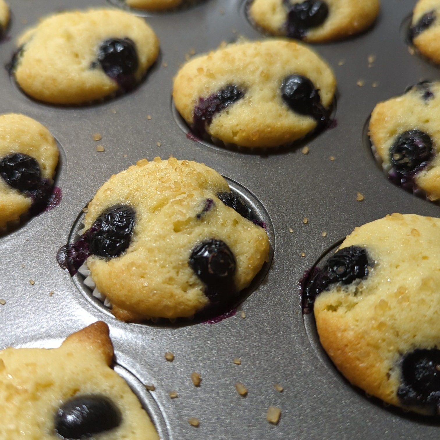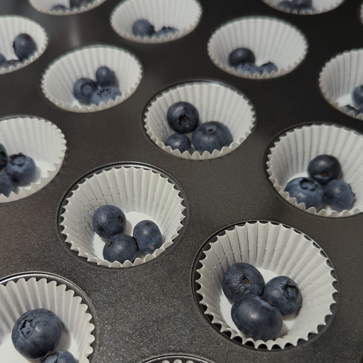 We weight up each muffin without blueberries to ensure an accurate dose, and add the blueberries to each one by hand with love.
