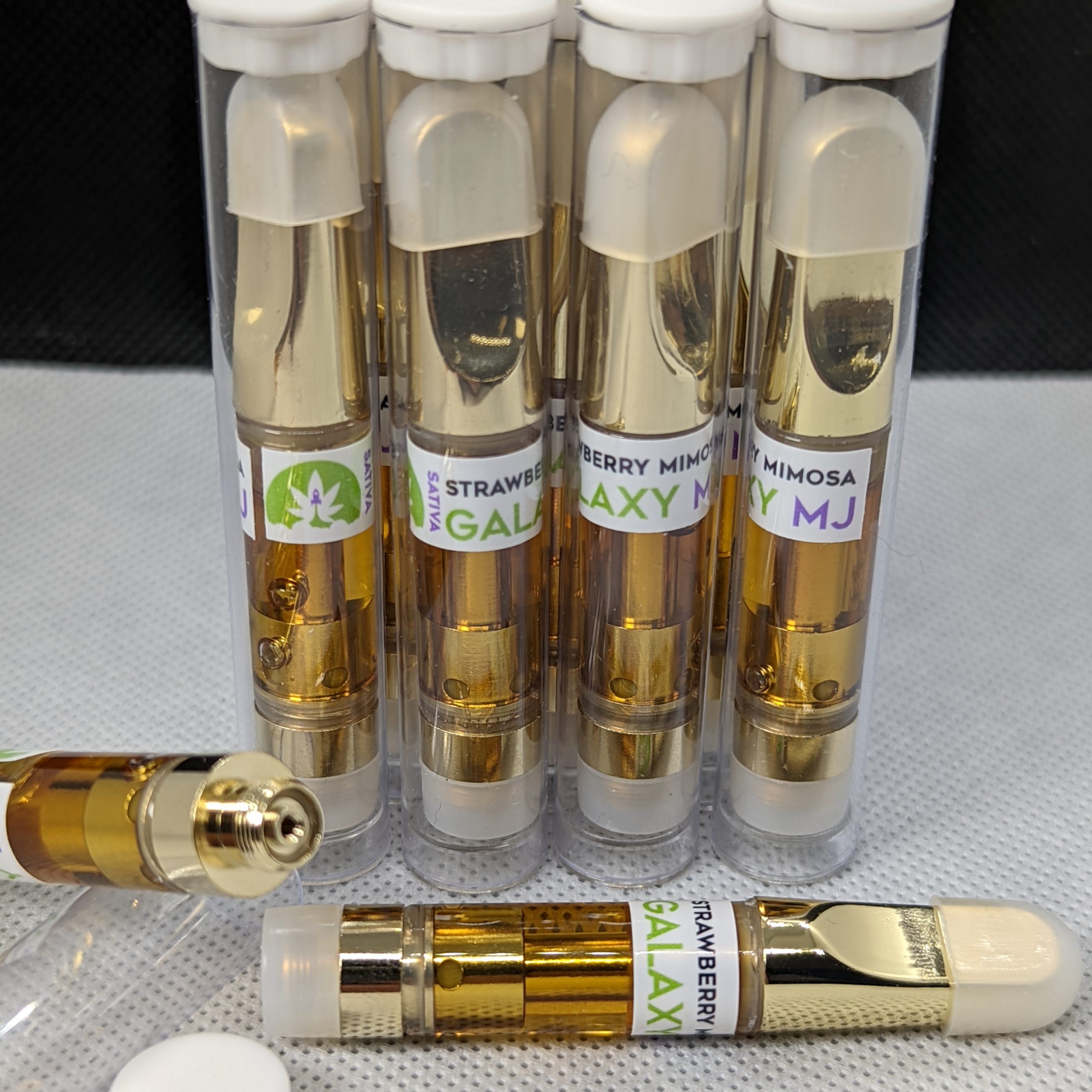 Premium Quality GOLD THC Vape Cartridges by Galaxy MJ are made using 90% Pure THC Distillate (98% pure) + 7% Terpenes.