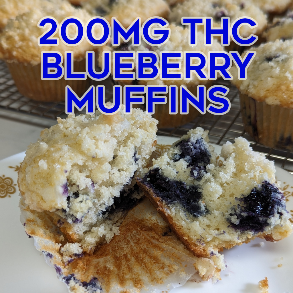Fresh Blueberries, Flour, Sugar, Whole Milk, Eggs, Butter, Baking Soda, Sunflower Lecithin, Salt, Vanilla Extract, Almond Extract, THC Distillate, Decarboxylated Shatter