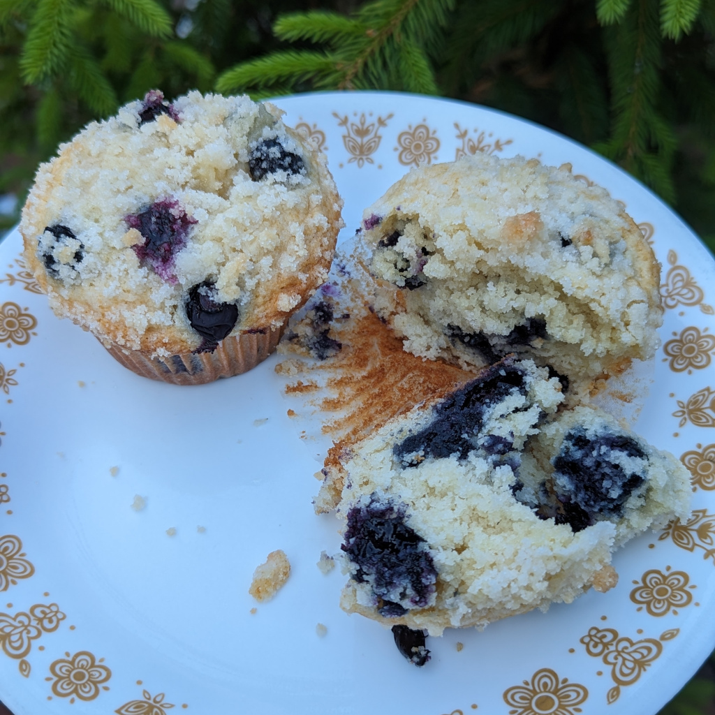 Local Fresh Blueberries, Flour, Sugar, Whole Milk, Vegetable Oil, Eggs, Butter, Baking Soda, Sunflower Lecithin, THC Distillate, Decarboxylated Shatter