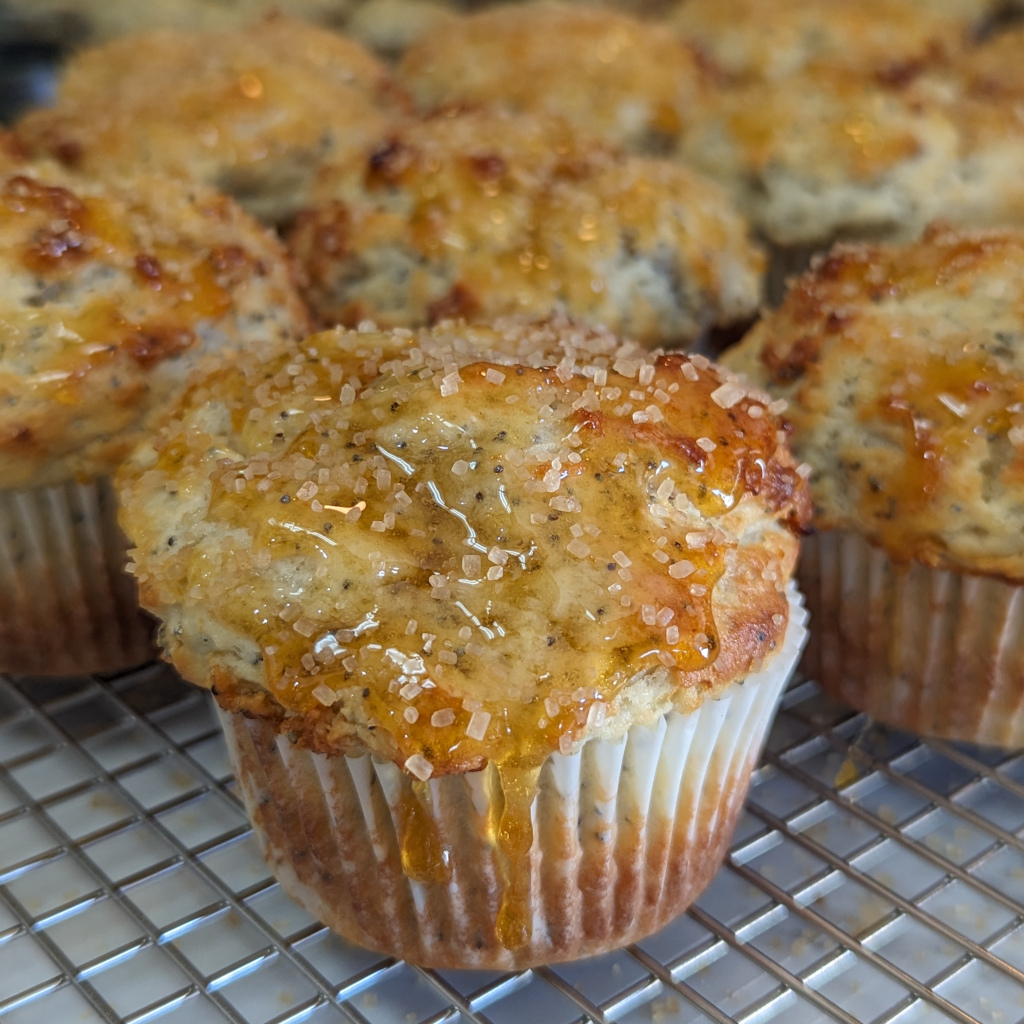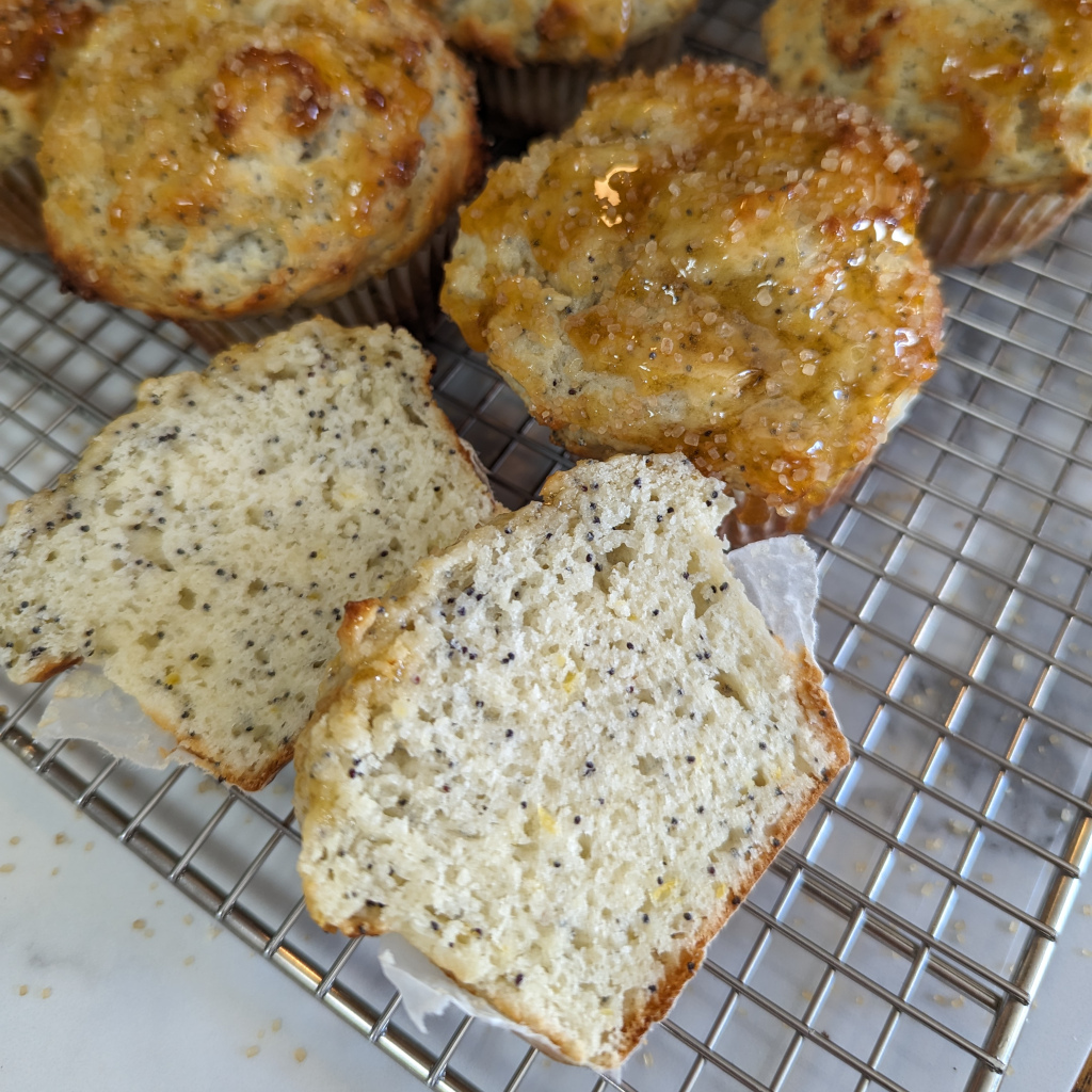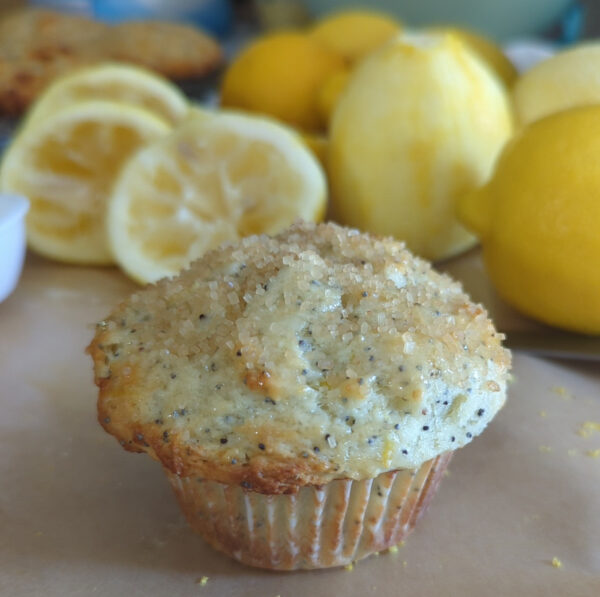 These Lemon Poppy Seed Muffins are perfectly sweetened and tender with a tart lemon glaze and sprinkling of coarse RAW sugar!