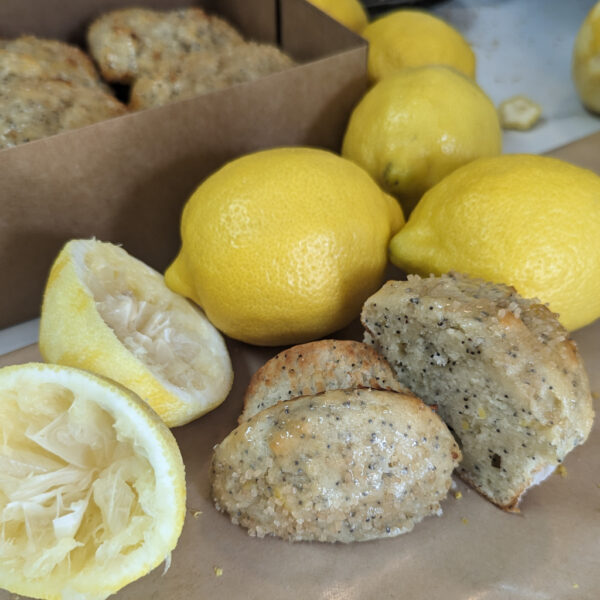Flour, Sugar, 5% Greek Yogurt, Poppy seeds, Eggs, Butter, Fresh Lemon Juice & Zest, Baking Soda, Sunflower Lecithin, Salt, THC Distillate, Decarboxylated Shatter