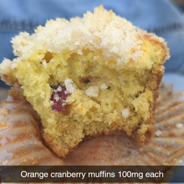 Enjoy these high dose Orange Cranberry THC Muffins for a limited time only, while supplies last!