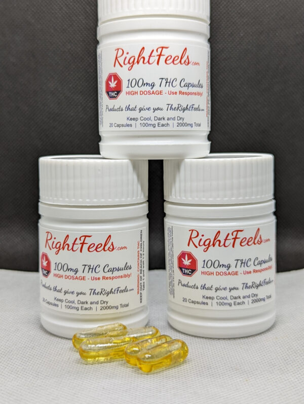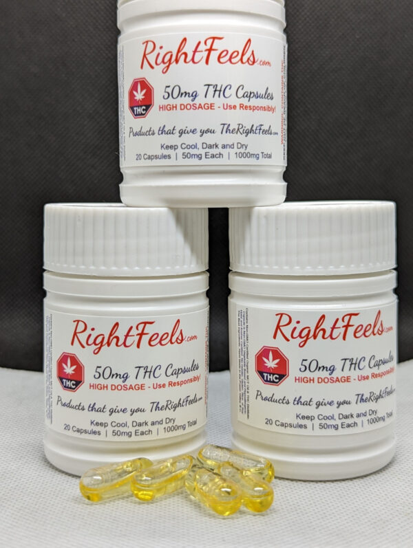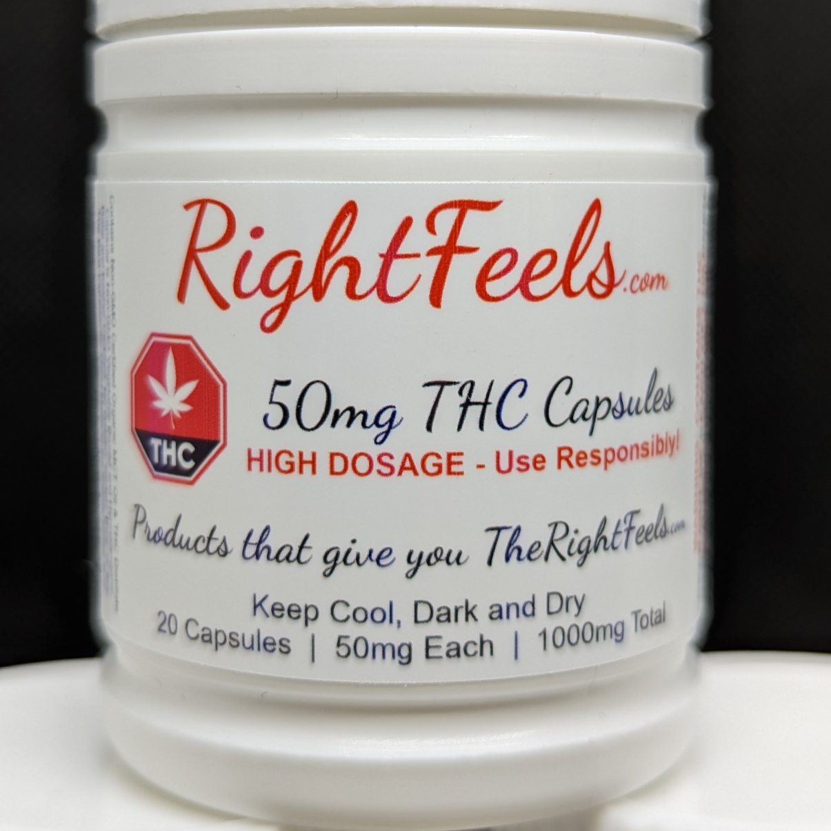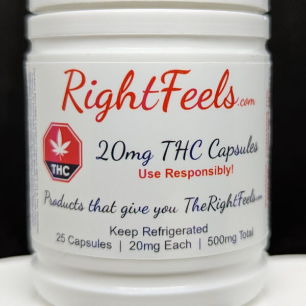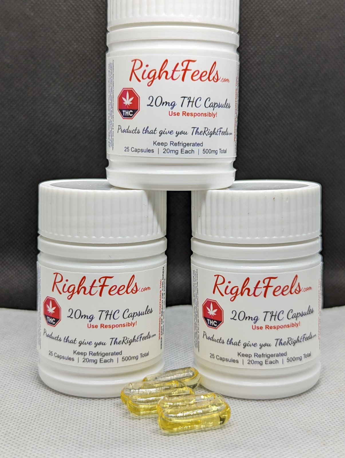 These capsules are the same mix as TheRightFeels THC Tincture, just put into a capsule for tasteless and easy use!